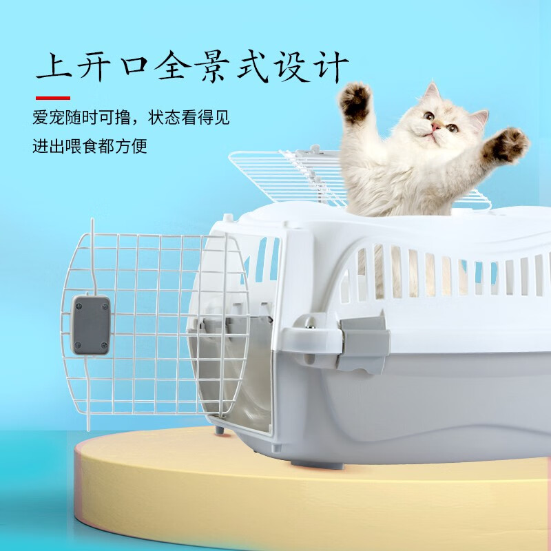 M-PETS-ZH宠物航空箱猫笼子猫咪狗狗托运箱猫箱便携外出狗笼子高颜值 双开口-太空灰-S码(6KG以内)