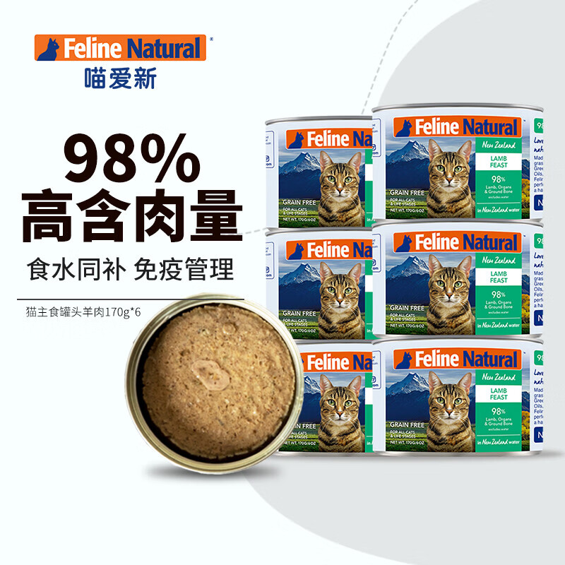 【自营时效】Feline Natural k9主食猫罐头 新西兰原装进口成猫幼猫通用猫咪湿粮 羊肉170g*6