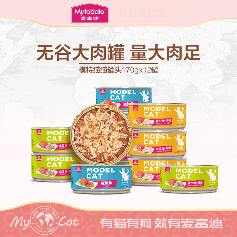 麦富迪(Myfoodie)猫罐头猫零食湿粮猫咪零食罐头成幼猫补充营养170g*12整箱 混合口味 12罐