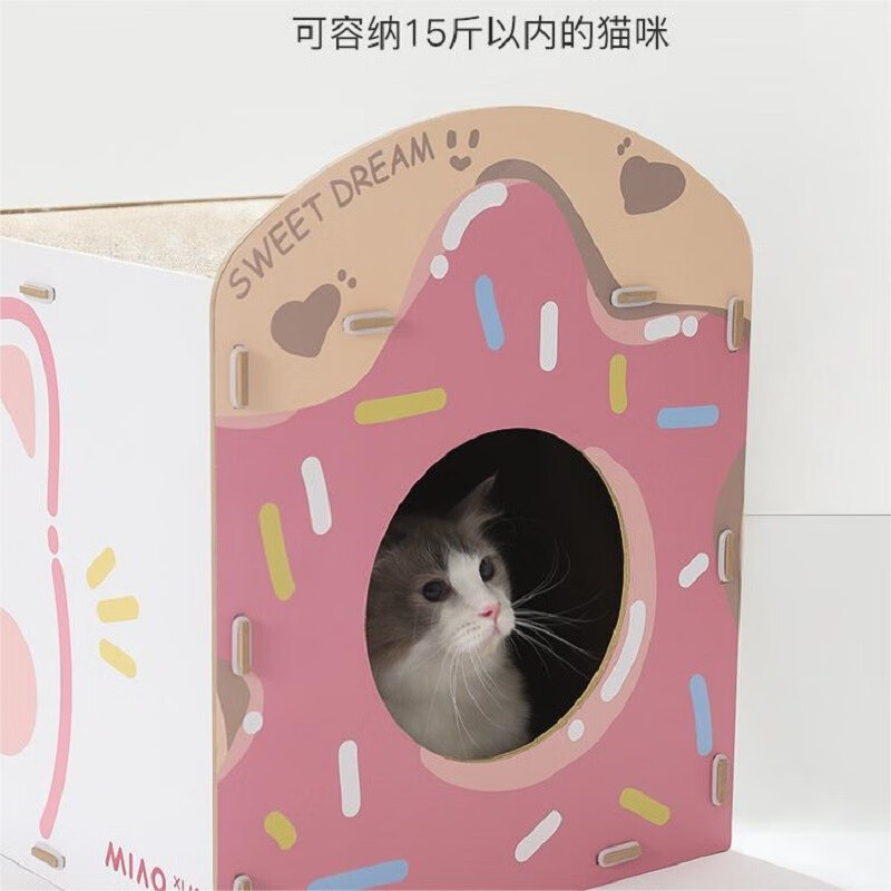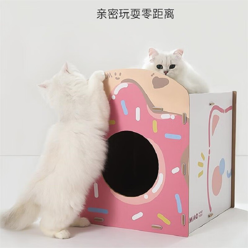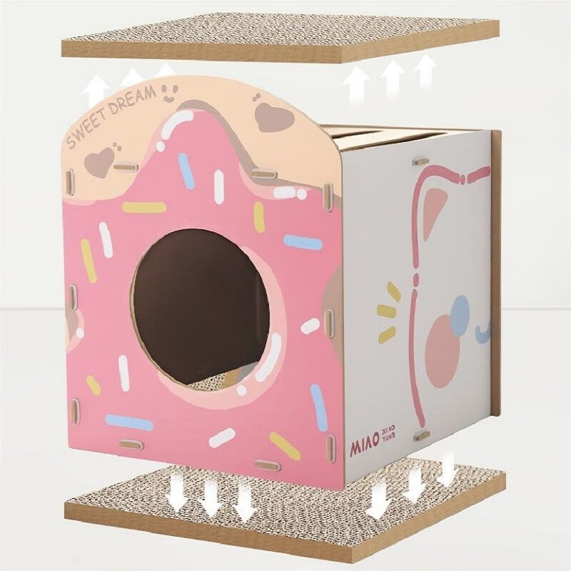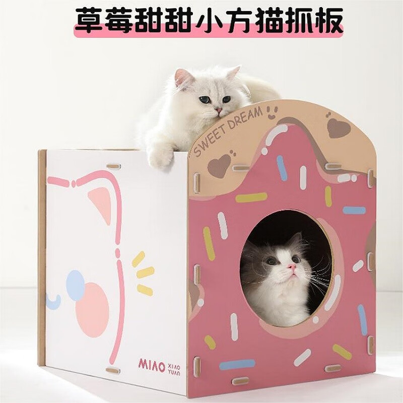 喵小元草莓甜甜小方猫抓板不掉屑猫窝一体猫咪抓板替换猫咪玩具 草莓甜甜小方
