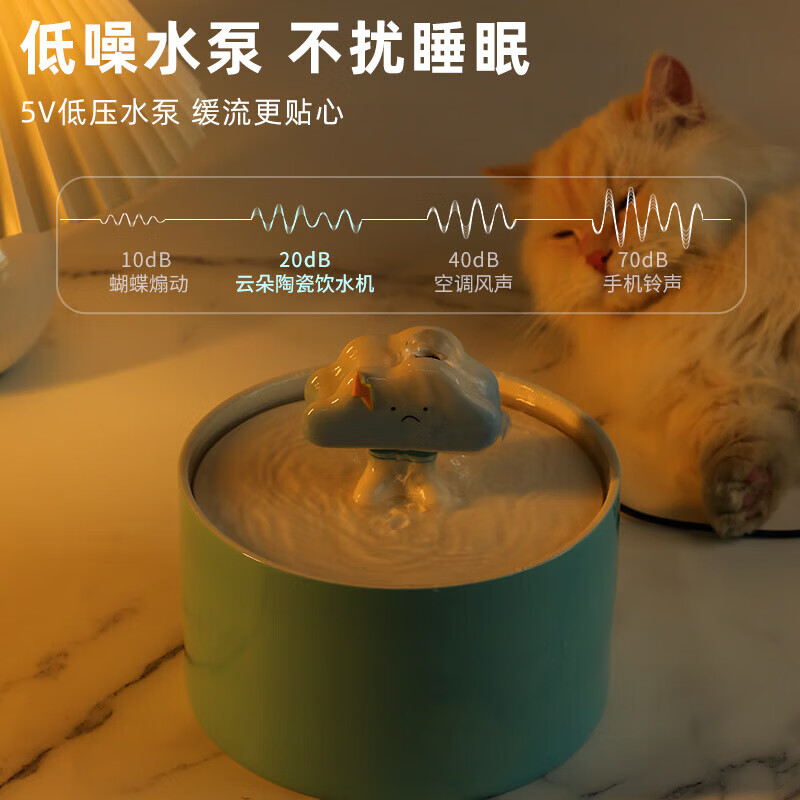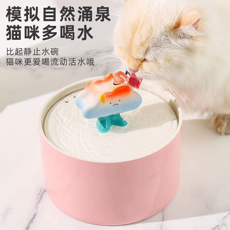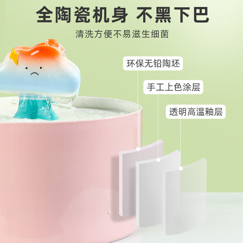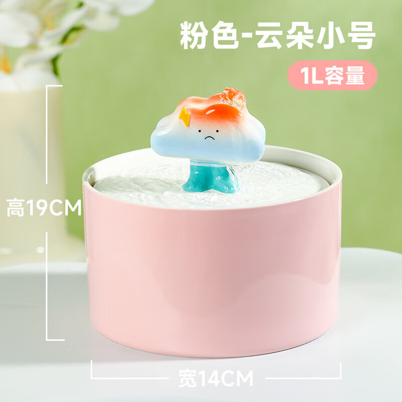 殊福傢猫咪饮水机陶瓷饮水器自动循环猫喝水器不湿嘴宠物流动喂水碗水盆 云朵小号-粉色