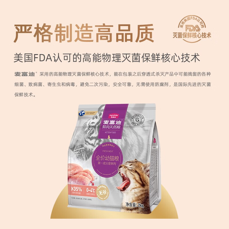 麦富迪猫粮 鲜肉倍护系列 无谷全价成猫粮宠物食品 添加风干黑肉粒 35%鲜肉 幼猫2kg