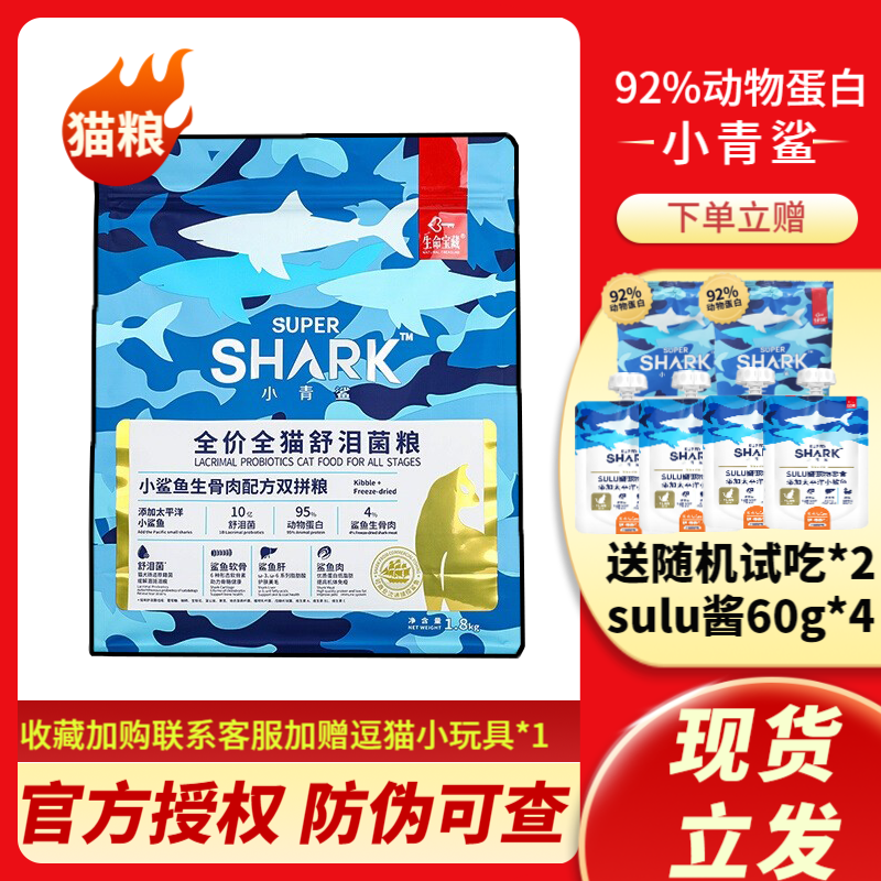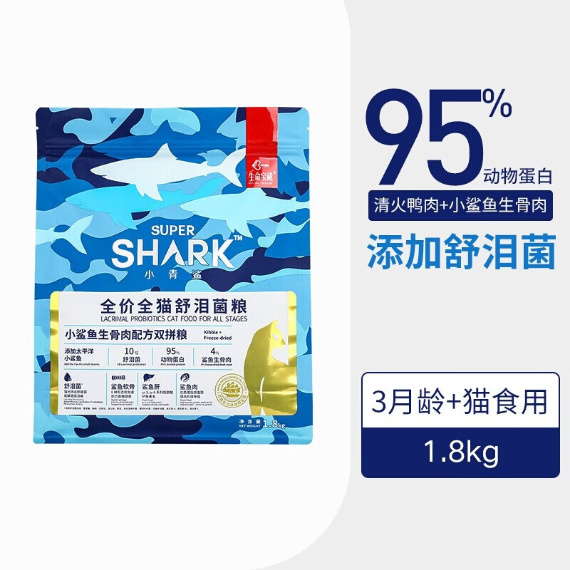 小青鲨猫粮冻干无谷物猫粮鱼肉营养成猫粮英短布偶折耳猫猫粮 冻干双拼舒泪菌粮1.8kg