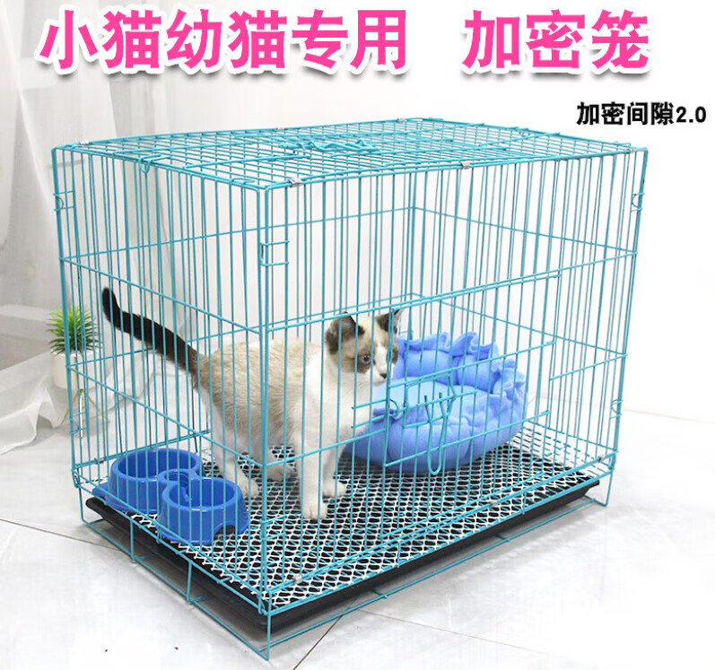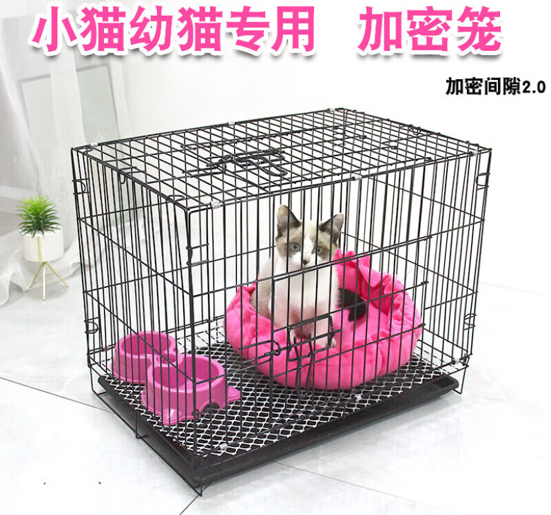 ABDT猫笼子加密小号幼猫笼子家用室内可折叠运输笼便捷兔笼鸡笼子 小号运输笼35*25*32 黑色 笼子(带托盘 食碗 脚垫 棉窝)