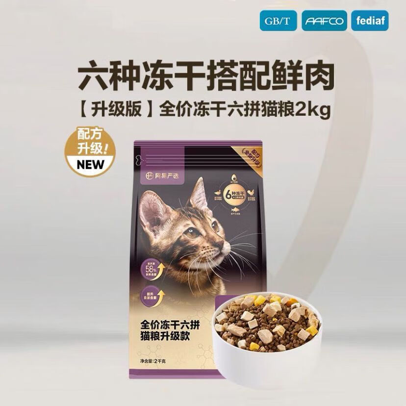 网易严选全价冻干六拼猫粮 幼猫成猫无谷营养粮 六种冻干鸡鸭鱼蛋 六拼升级款2kg*1袋