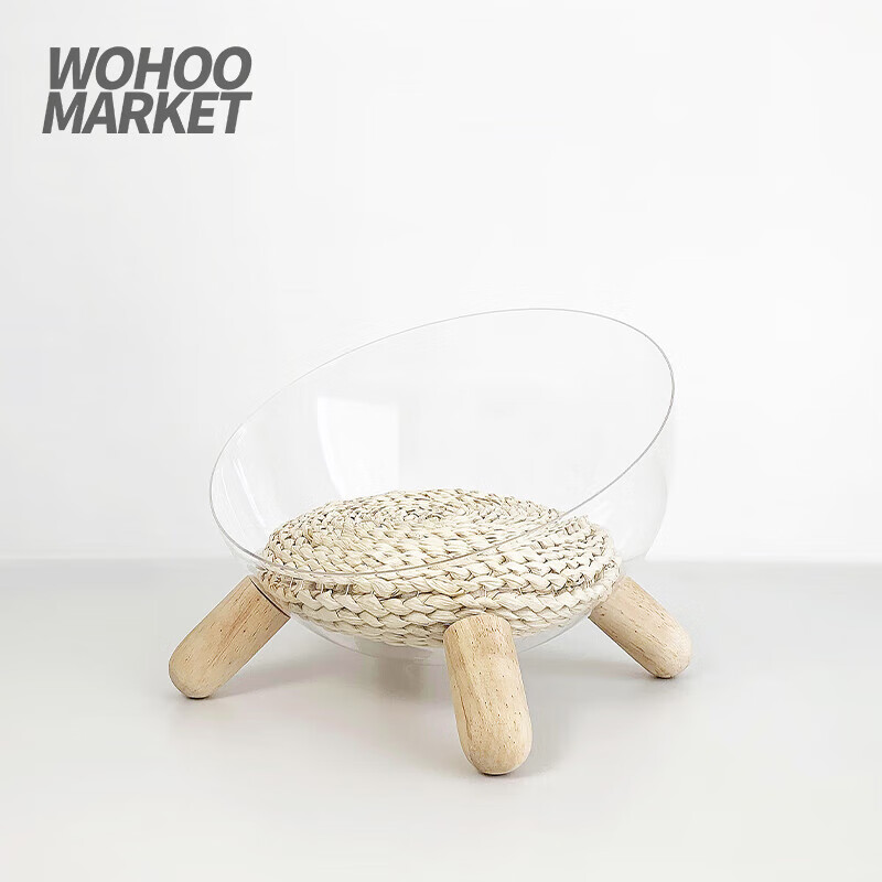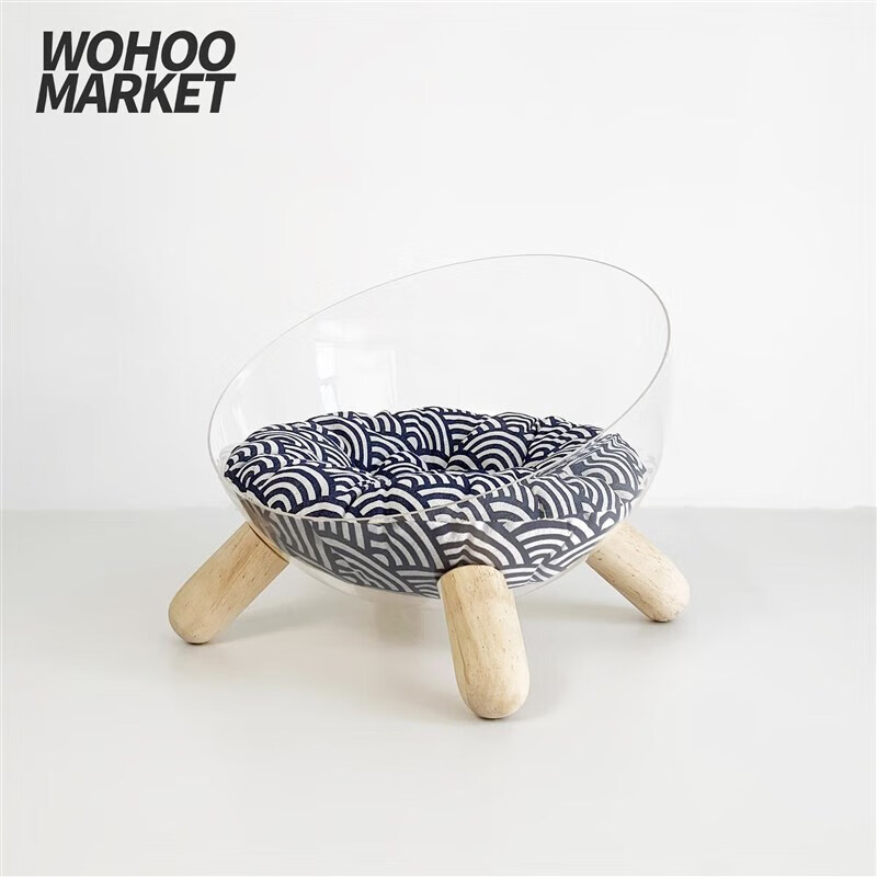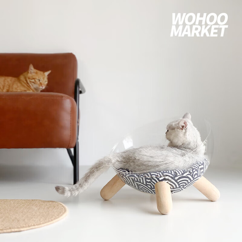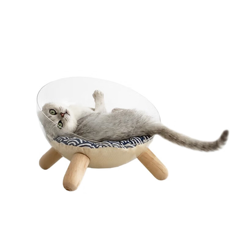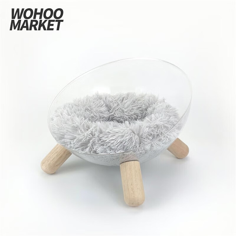 宠淘气猫狗窝透明太空舱猫窝亚克力小型狗窝四季垫子可拆洗实木 长绒-灰色 XL-超大型
