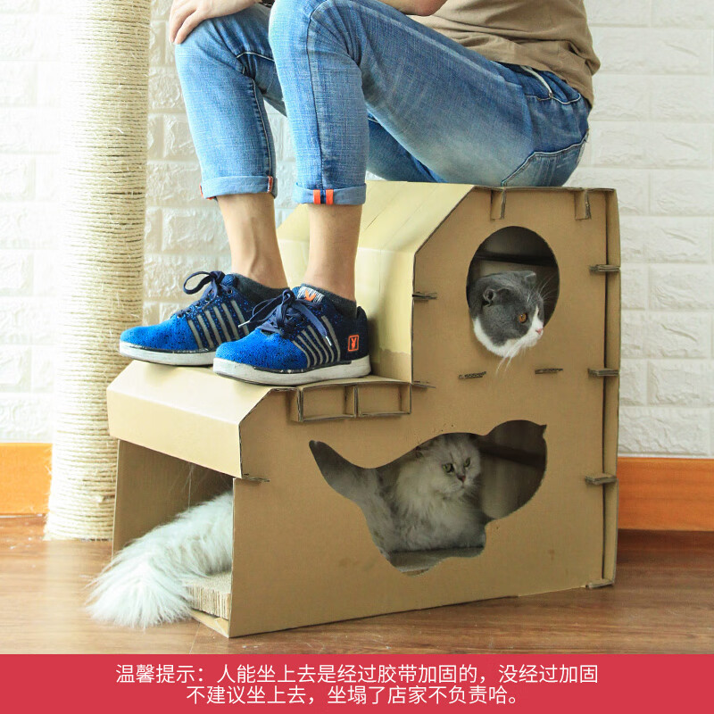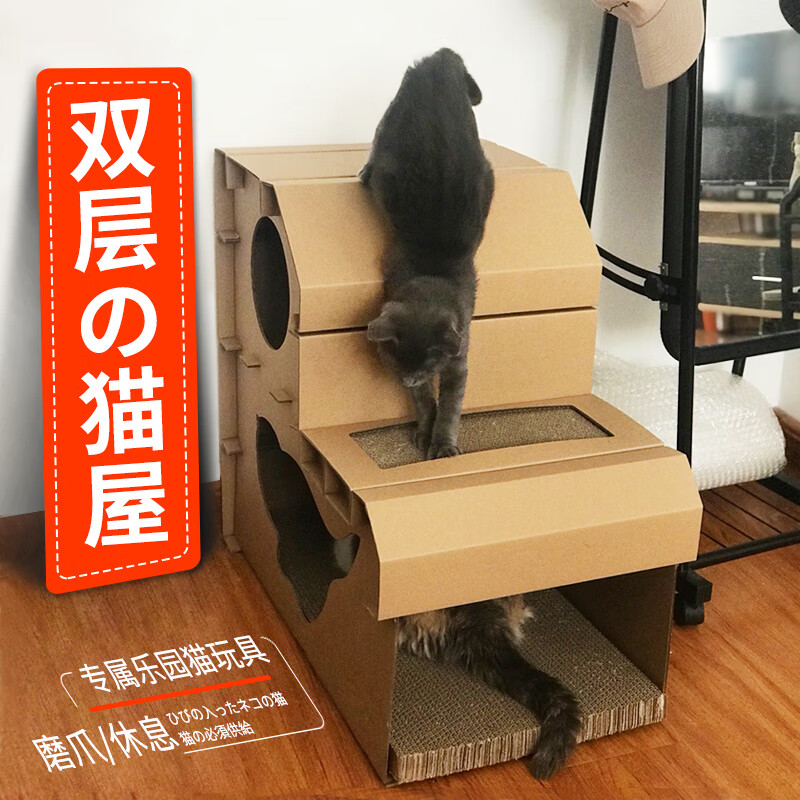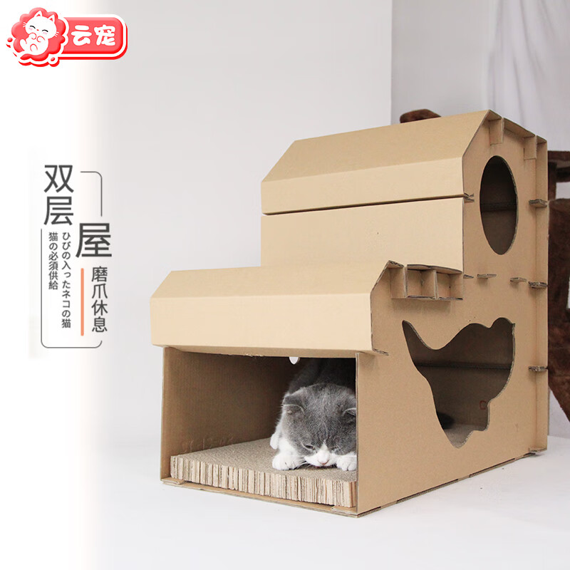纸箱猫爬架云宠 瓦楞纸猫窝猫玩具用品猫咪房子猫抓板 双层猫屋猫爬架磨爪器 双层瓦楞纸猫窝