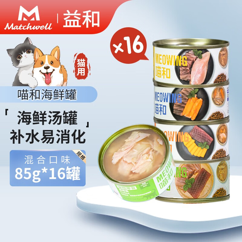 益和(MATCHWELL)益和猫罐头喵和零食汤罐营养猫粮拌饭猫咪宠物主食增肥发腮猫湿粮 【混合口味16罐】喵和猫罐头