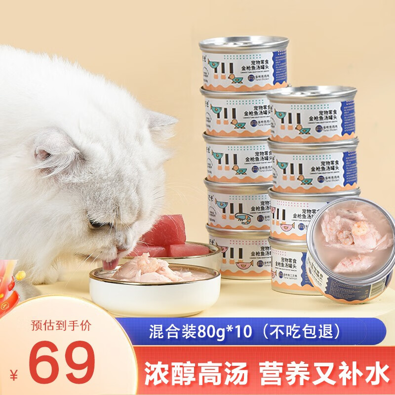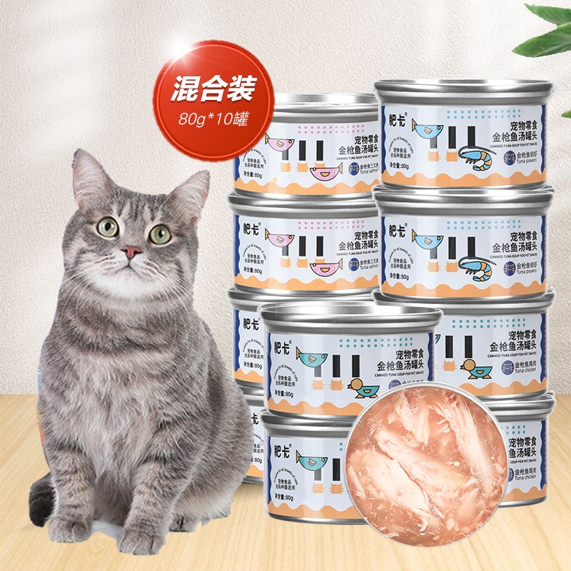 肥卡 猫咪罐头 鲜肉高汤营养增肥主食罐宠物猫咪零食拌饭成幼猫湿粮罐头 混合装80G*10罐