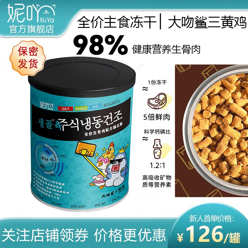 妮吖NiYa 全价主食冻干猫粮主粮98%生骨肉 高蛋白增肥发腮桶装 大吻鲨三黄鸡冻干(含两罐试吃)
