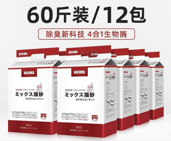 KOJIMA猫砂60斤豆腐猫砂混合膨润土猫砂15公斤猫咪猫砂2.5kg*12包 [60斤囤]混合猫砂2.5kg*12