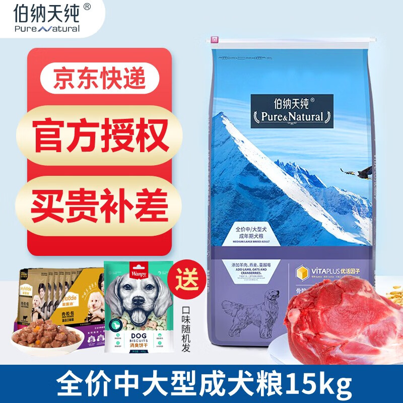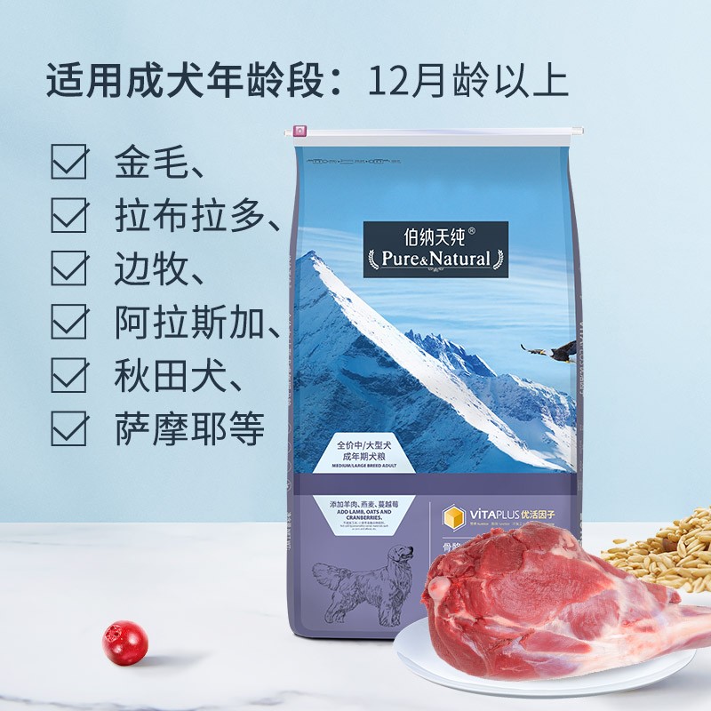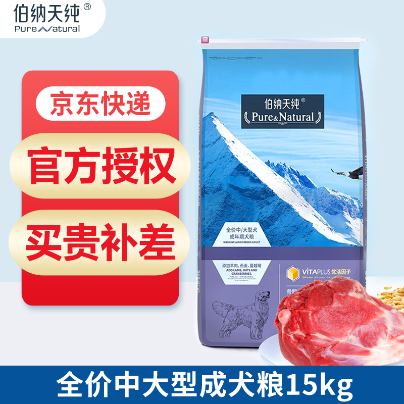伯纳天纯狗粮15kg金毛泰迪拉布拉多大型中型成犬粮通用型天然粮 中大型成犬15kg
