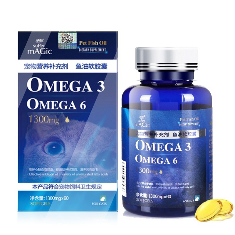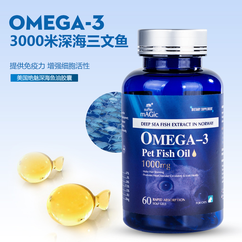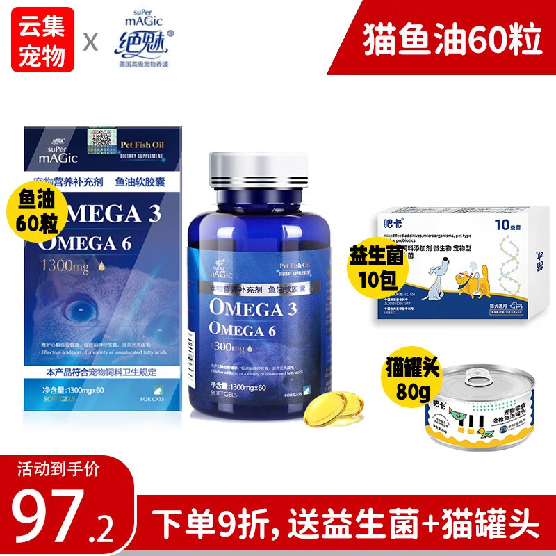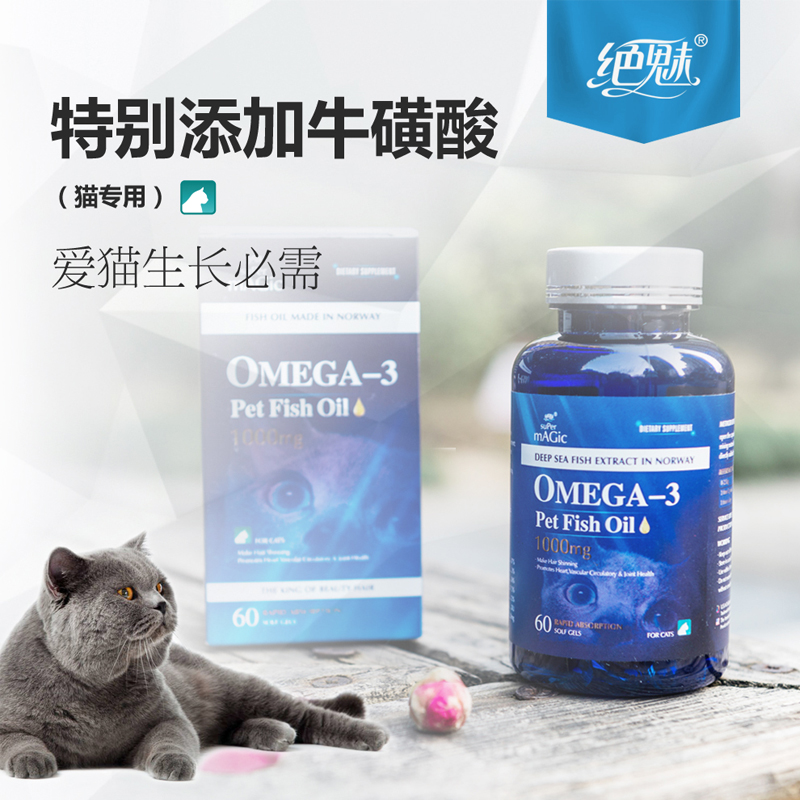 【防伪可查】美国绝魅 狗狗猫咪鱼油宠物三文鱼油猫鱼油 卵磷脂美毛亮毛防脱毛宠物保健用品 猫咪用60粒