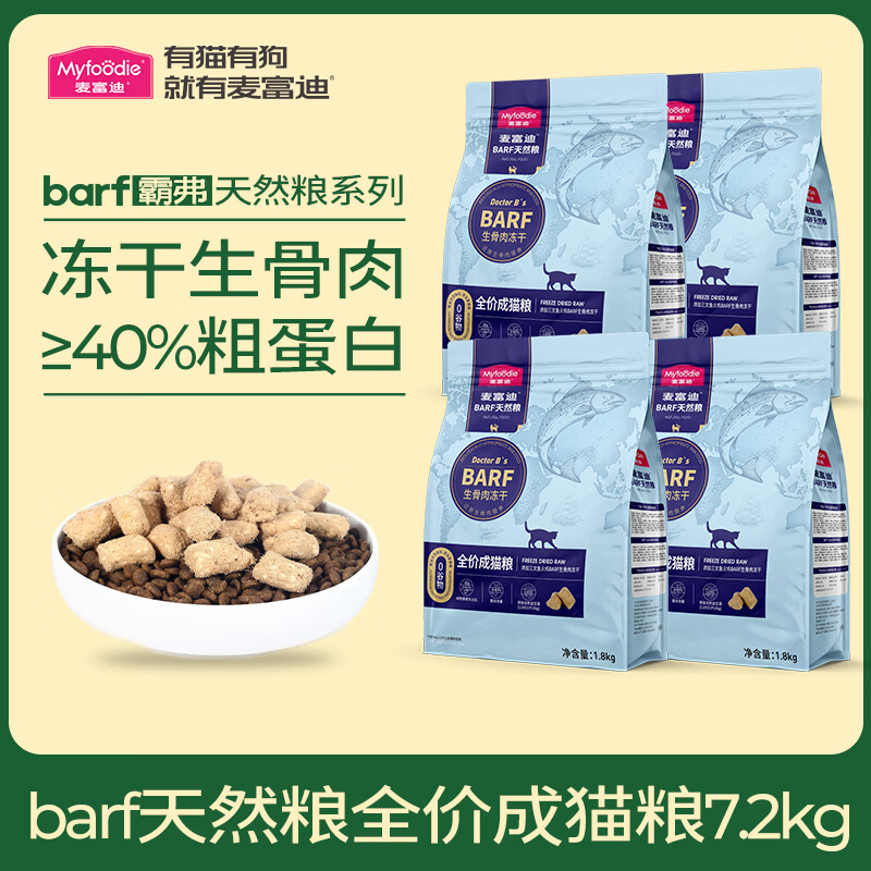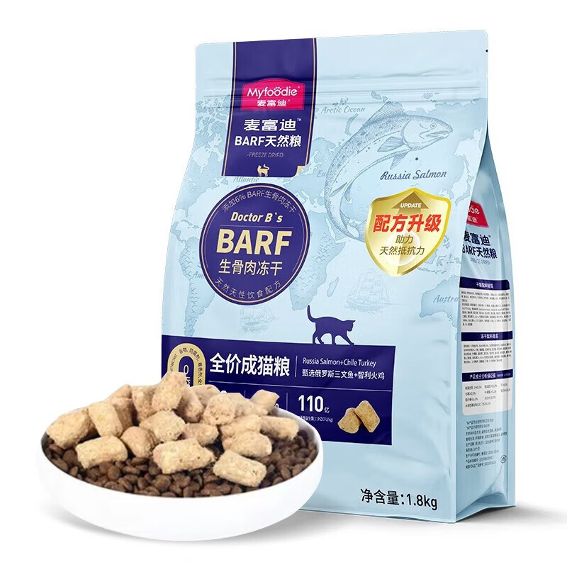 麦富迪(Myfoodie) BARF生骨肉冻干双拼天然粮鲜肉无谷高肉高蛋白 成猫粮7.2KG(三文鱼