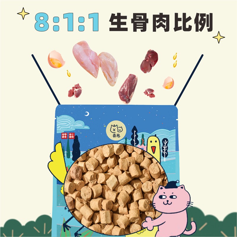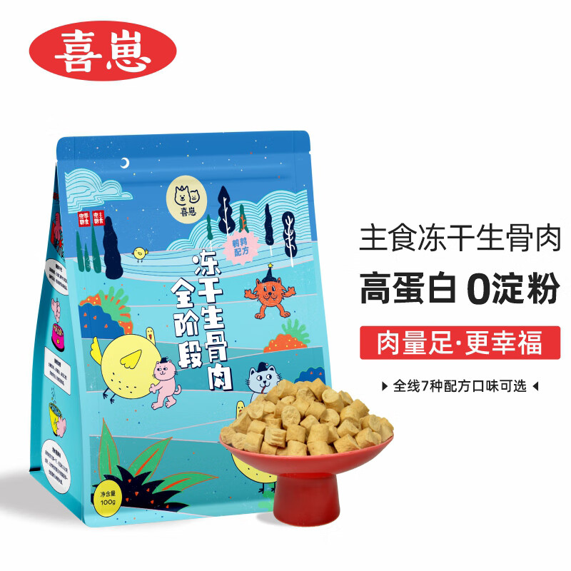 喜崽 主食冻干生骨肉鹌鹑猫零食 补充营养猫咪全价成幼猫猫粮100g