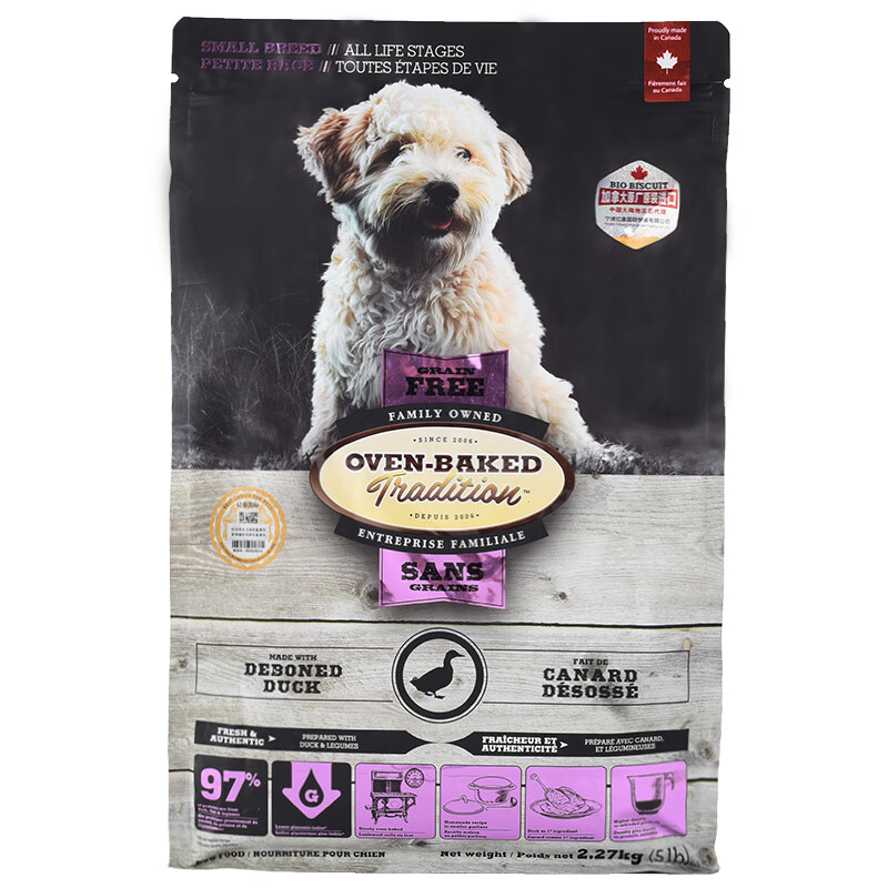 欧恩焙加拿大原装进口无谷小型犬低温烘焙配方全犬粮泰迪法斗比熊通用全阶段成犬幼犬狗粮 鸭肉味小颗粒5磅【2.27kg】