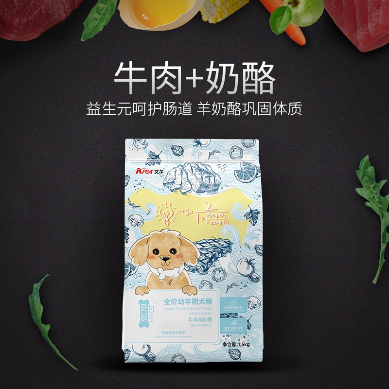 艾尔(Aier)狗粮 幼犬泰迪金毛拉布拉多雪纳瑞比熊萨摩大型犬小型犬牛肉果蔬通用粮天然粮 通用幼犬粮 通用幼犬粮1.5kg