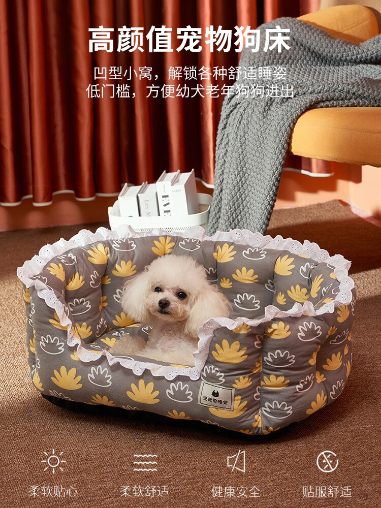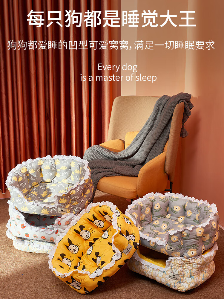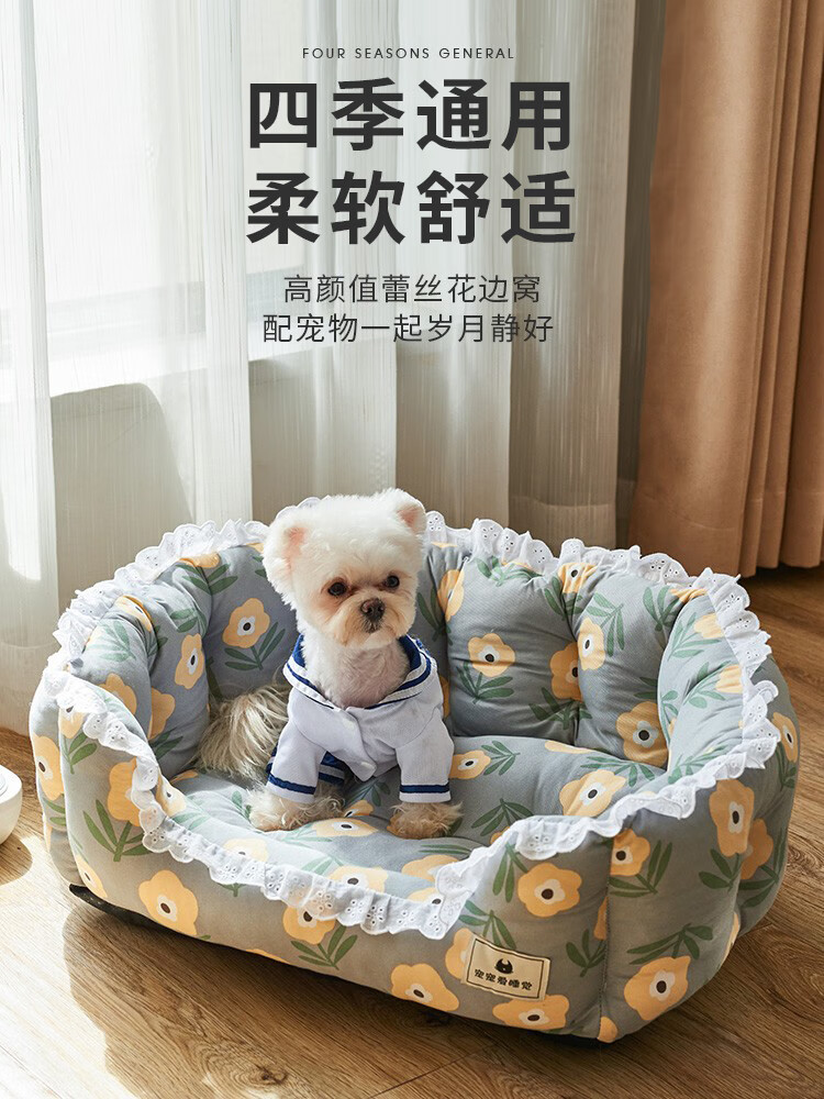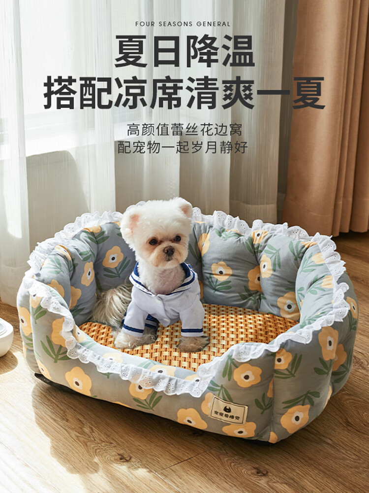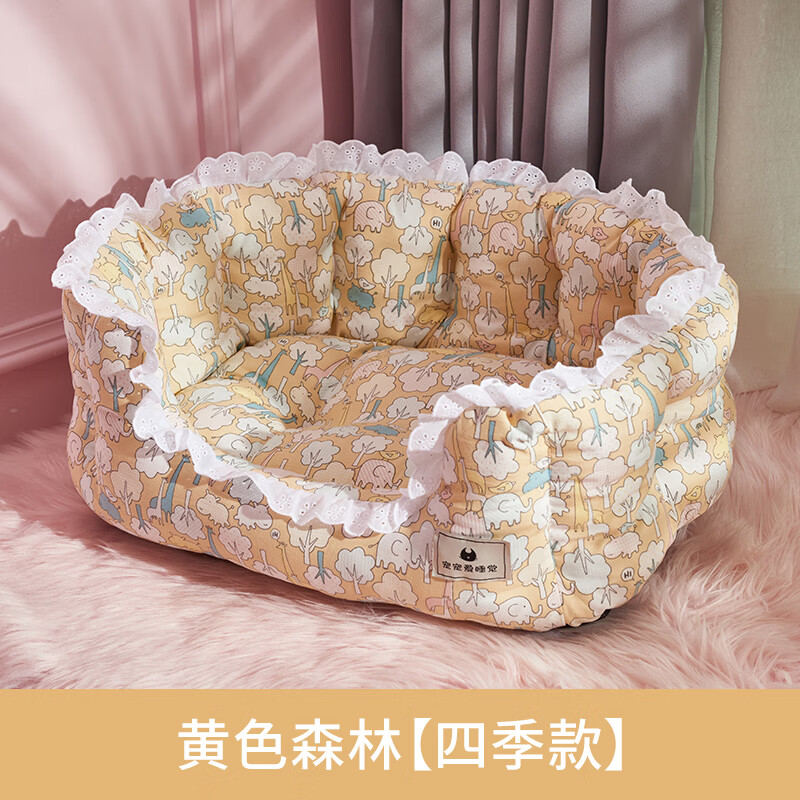 昌炅狗窝四季通用狗狗床小型犬泰迪窝夏季非可拆洗猫窝狗垫子宠物用品 四季通用狗窝黄色森林 中号-10斤左右犬猫(小型犬过渡)