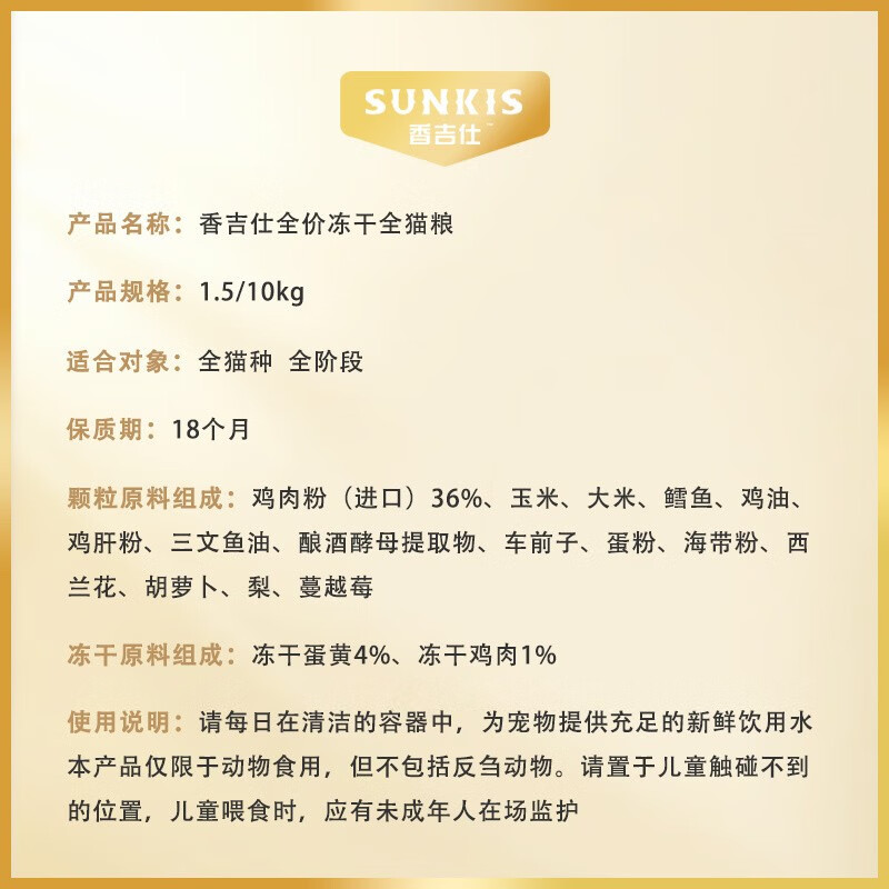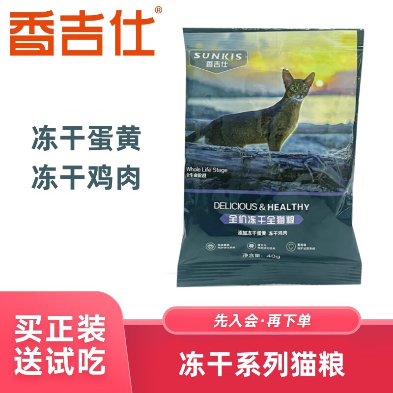 香吉仕香吉士猫粮全期全价通用无谷冻干添加蛋黄鱼油生骨肉繁育猫粮20斤 冻干试吃40g*1袋