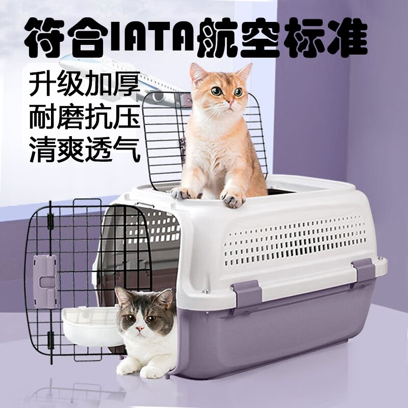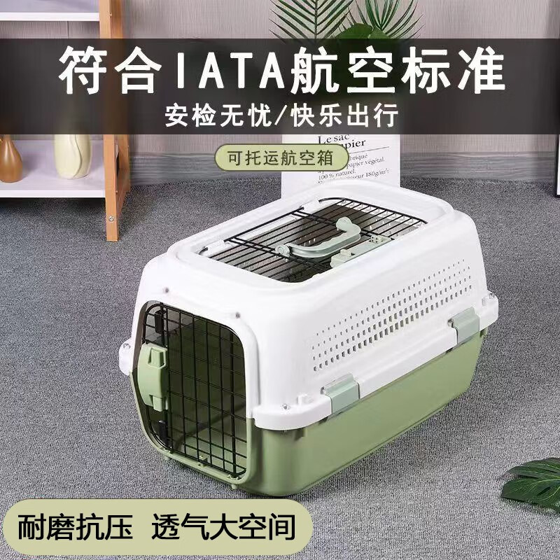 易立新加厚【带挂碗】宠物航空箱大号狗猫托运箱猫咪狗狗航空箱运输箱 贈隔尿板挂碗【天窗款】牛油果绿 M-适合10斤内猫犬