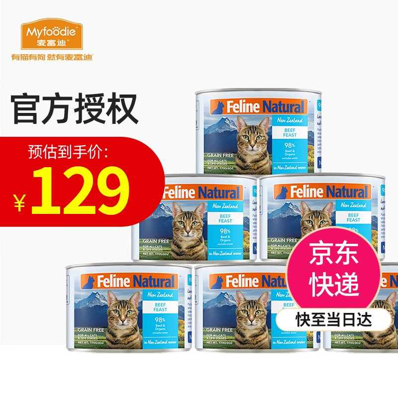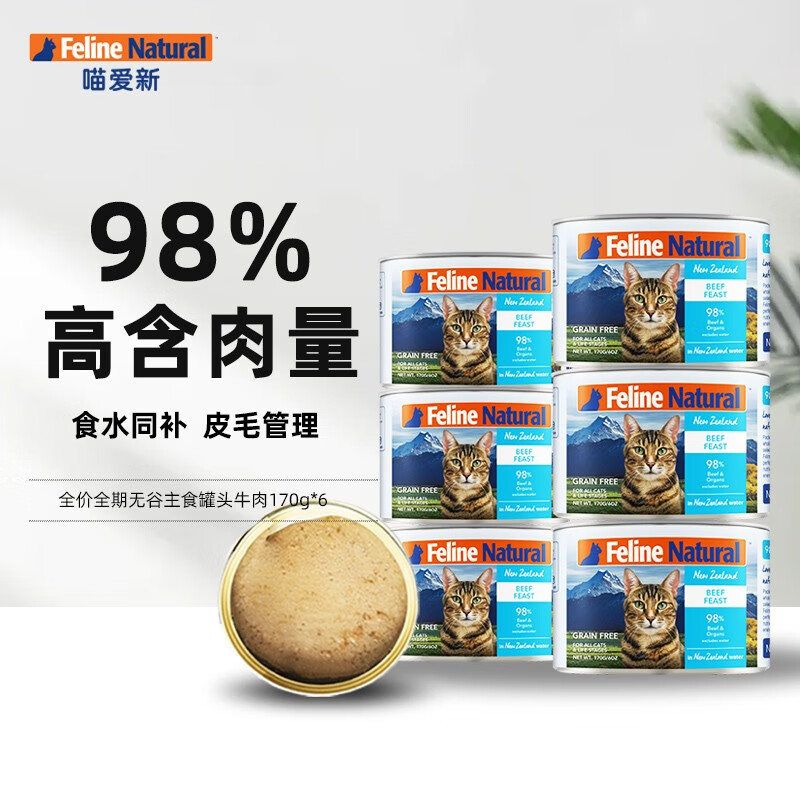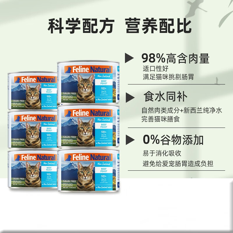 【自营时效】Feline Natural k9主食猫罐头 新西兰原装进口成猫幼猫通用猫咪湿粮 牛肉170g*6