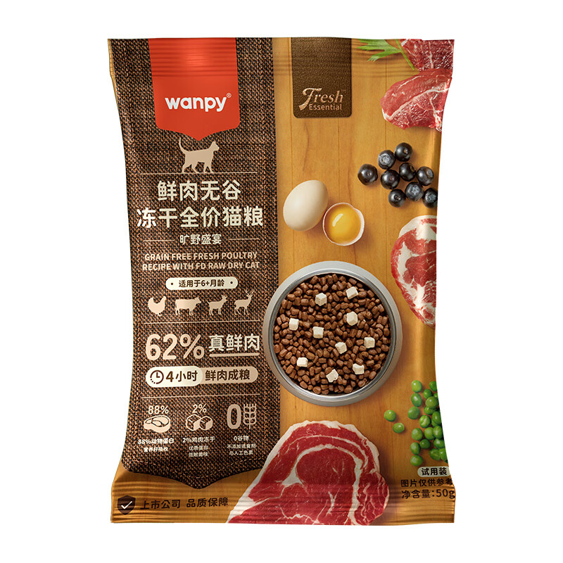 顽皮(Wanpy)鲜选猫粮62%鲜肉无谷冻干全价猫干粮 旷野盛宴50g