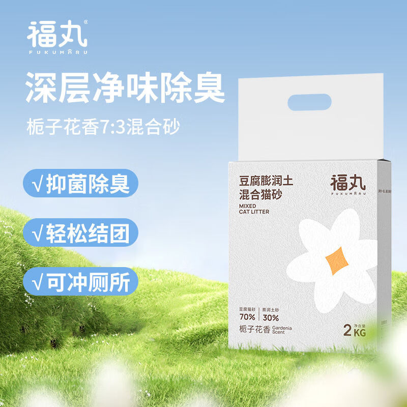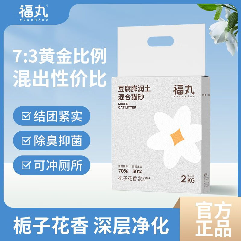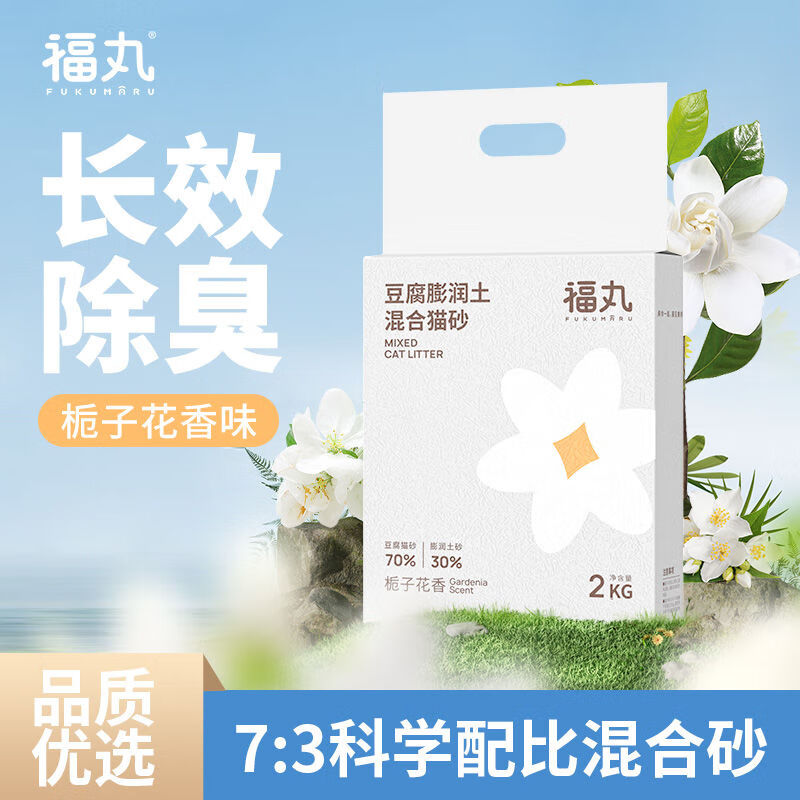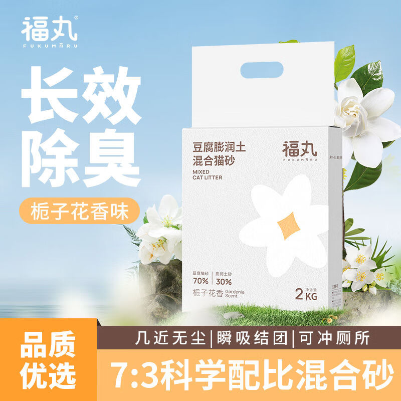 福丸猫砂栀子花豆腐砂膨润土混合猫砂结团快可冲厕所4斤 4斤【栀子花味】 4包 整箱装