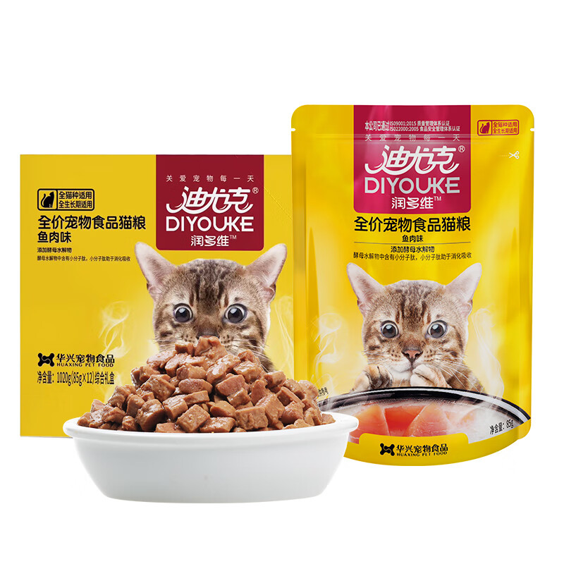 迪尤克DIYOUKE 猫湿粮成幼猫罐头全价通用型宠物妙鲜包 鱼肉味85g12包