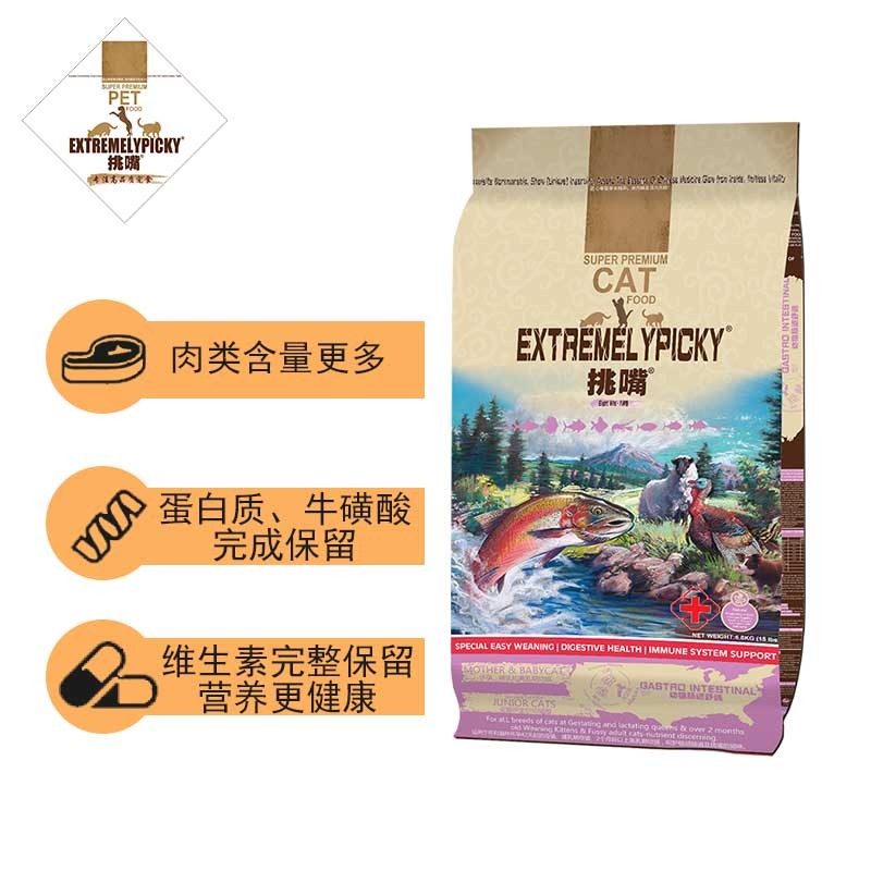 【顺丰】挑嘴全价幼猫猫粮鱼肉口味高鲜肉肠道舒适猫粮幼猫粮天然无谷九种肉配方易吸收助成长 1.3kg/3磅 冻干