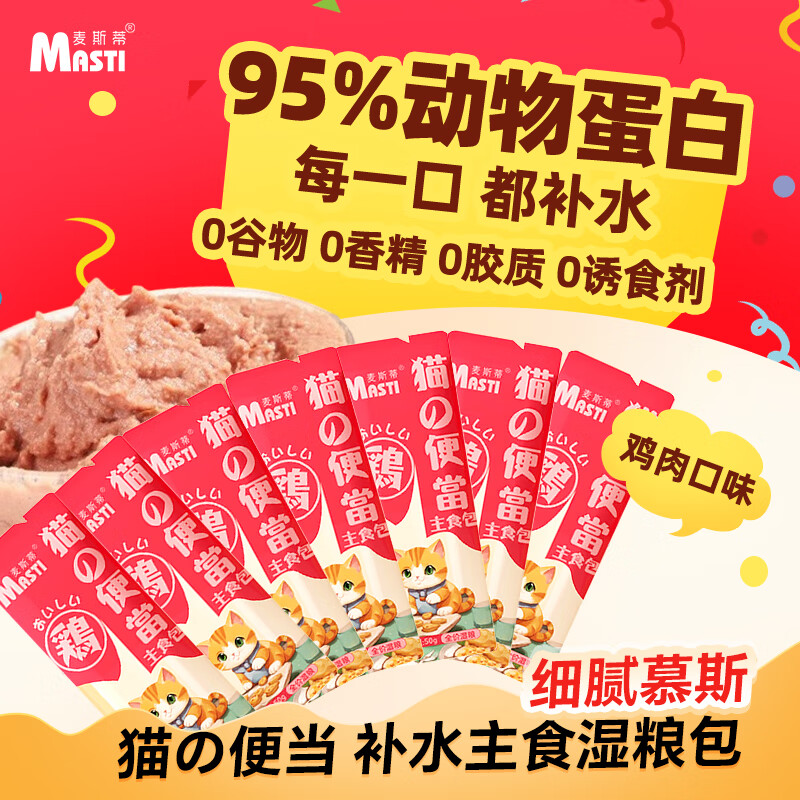 麦斯蒂猫咪猫饭主食餐包猫湿粮便当全价猫粮补水发腮鸡肉三文鱼猫湿粮 【2天尝鲜】鸡肉味 50g 6包