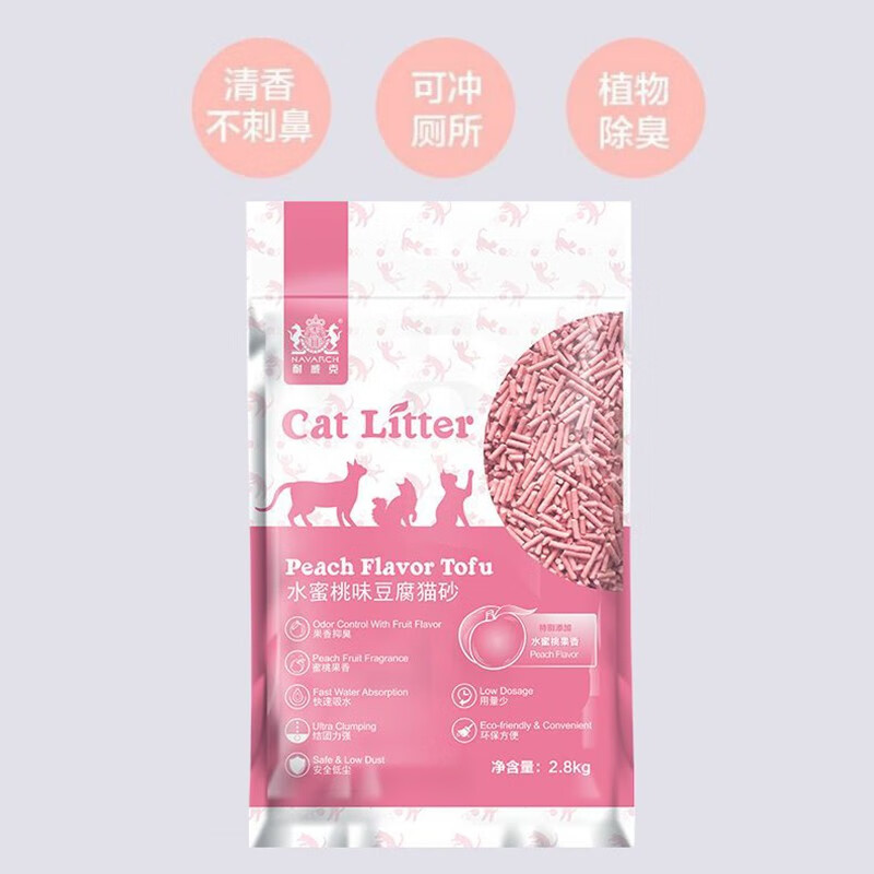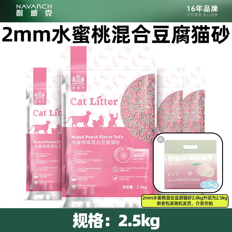 耐威克(Navarch)豆腐猫砂 绿茶味豆腐砂 低尘除味快速吸水易结团 2mm水蜜桃混合豆腐砂2.5kg 4包【囤货 超划算】
