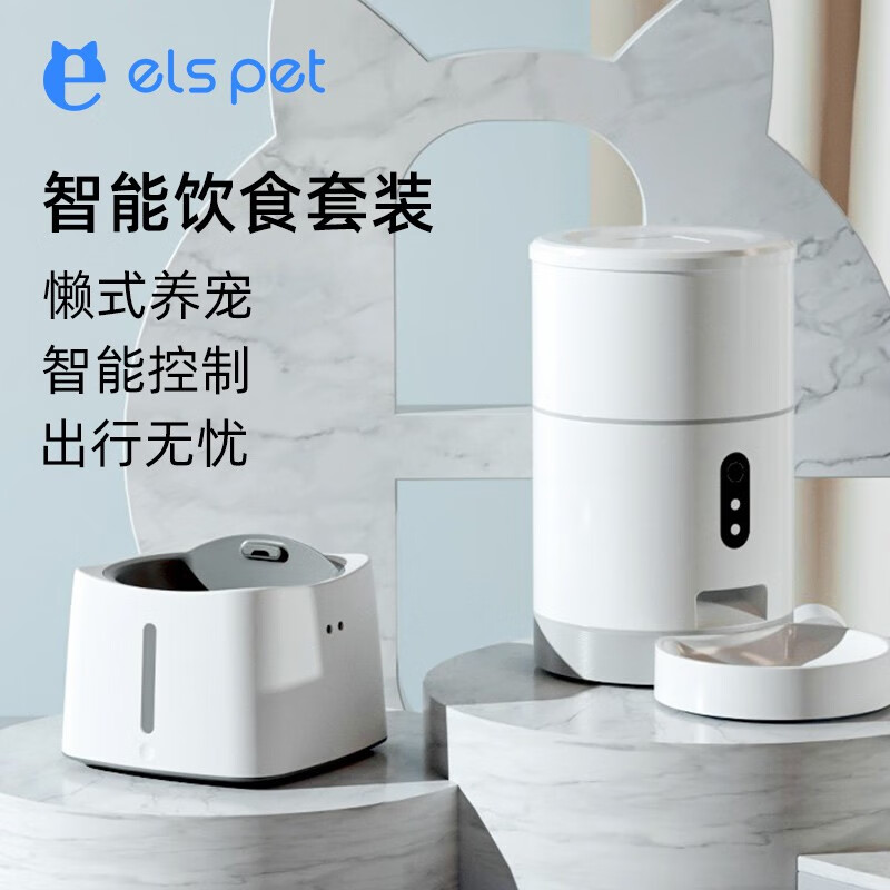 小壹宠物猫咪喂食器猫碗手机远程猫粮投食机定时定量猫粮桶猫食盆宠物用品 饮水机和喂食器(WiFi)组合装