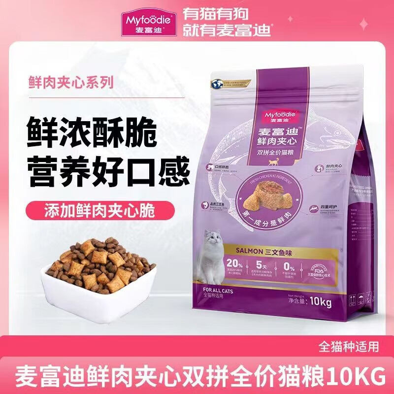 麦富迪猫粮10kg鲜肉夹心双拼粮三文鱼鸡肉营养增肥成幼猫主粮20斤 三文鱼全价猫粮(成幼通用)10kg