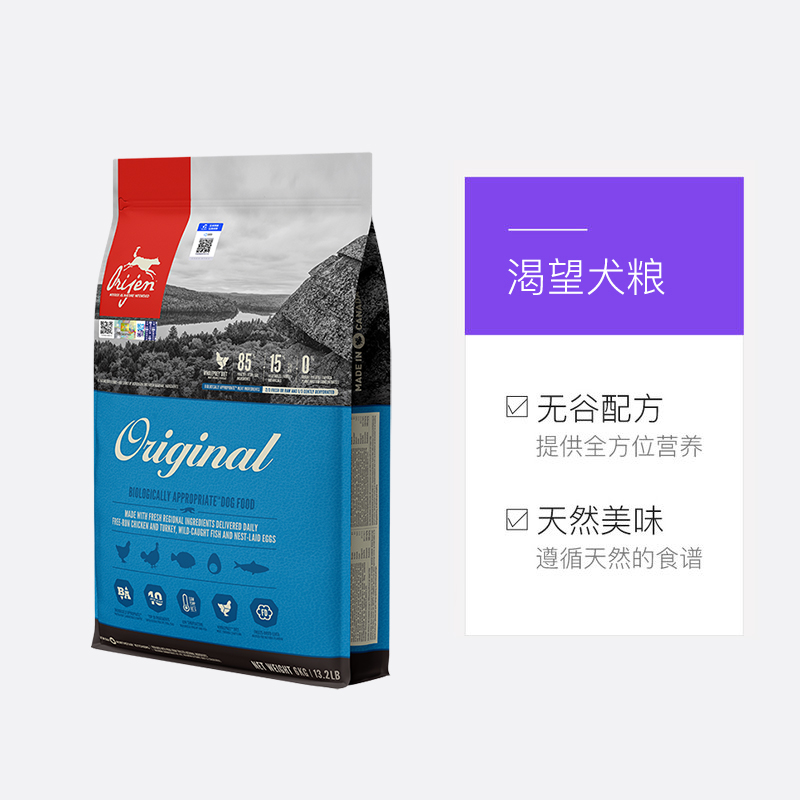 Orijen/渴望加拿大进口无谷鸡肉原味全犬粮幼犬狗狗干粮6kg主粮