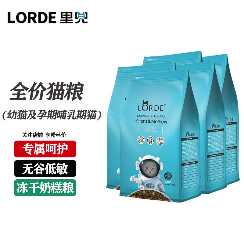 lorde里兜猫粮 冻干无谷天然粮 鸡肉鳕鱼 哺育系列 孕期哺乳期幼猫粮 离乳幼猫5包(23.3效期