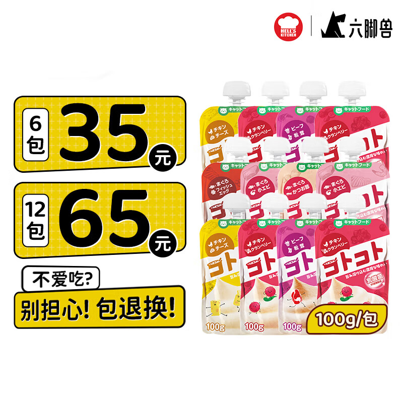 地狱厨房Hell's kitchen 咕噜酱 猫咪零食肉泥猫零食湿粮软包罐头 成猫混拼 24包