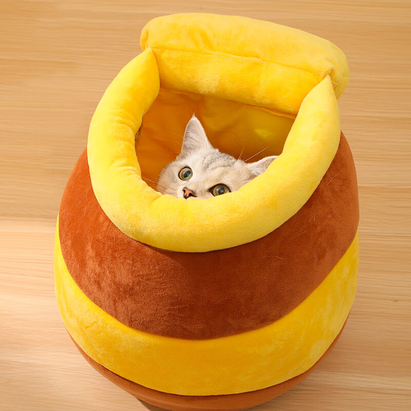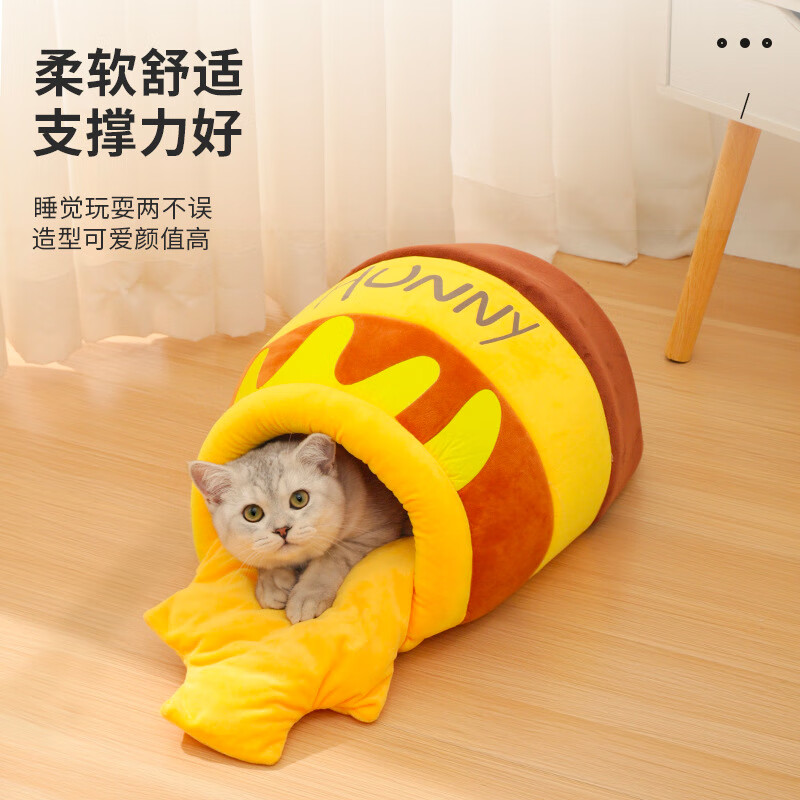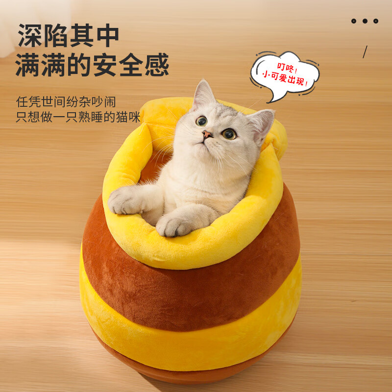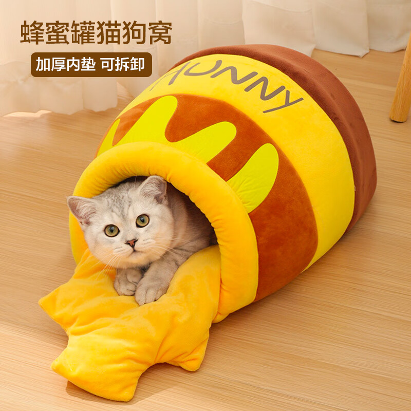 喵小兜M01蜂蜜罐猫窝四季通用猫狗窝卡通维尼熊封闭式可爱猫咪宠物保暖