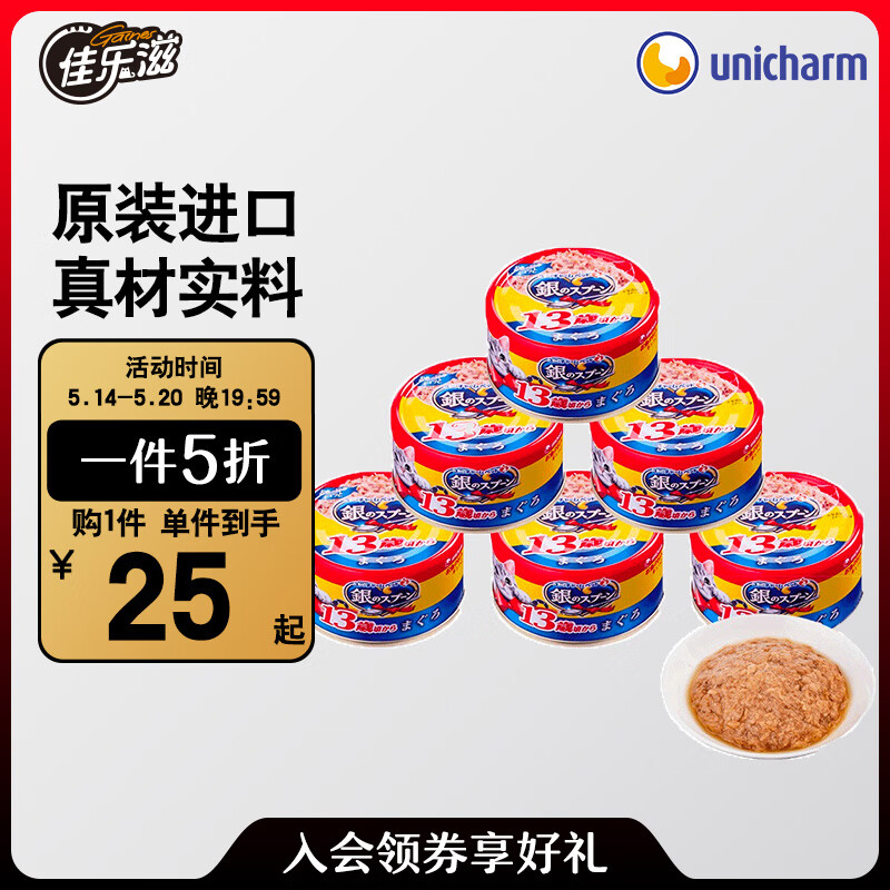 佳乐滋银勺猫罐头猫湿粮猫零食老猫成猫幼猫泰国进口金枪鱼鲣鱼70g*6