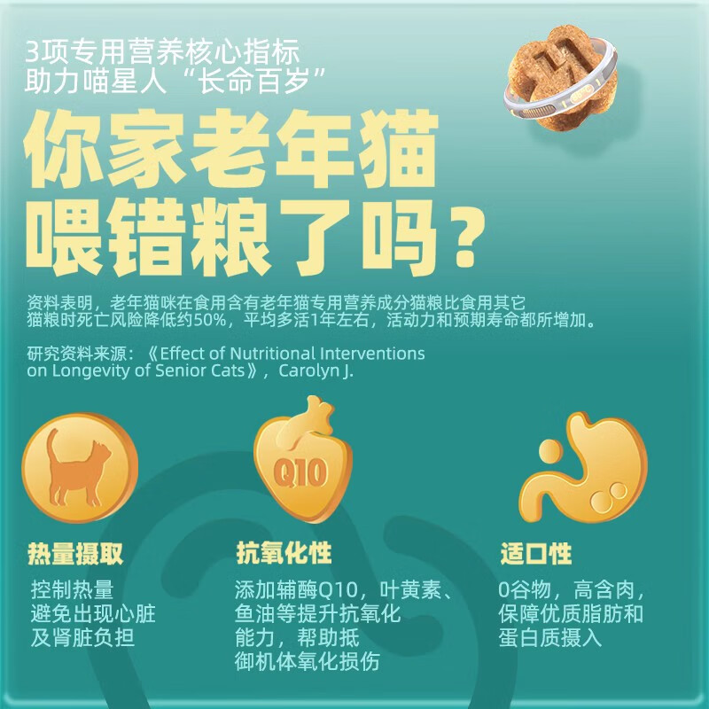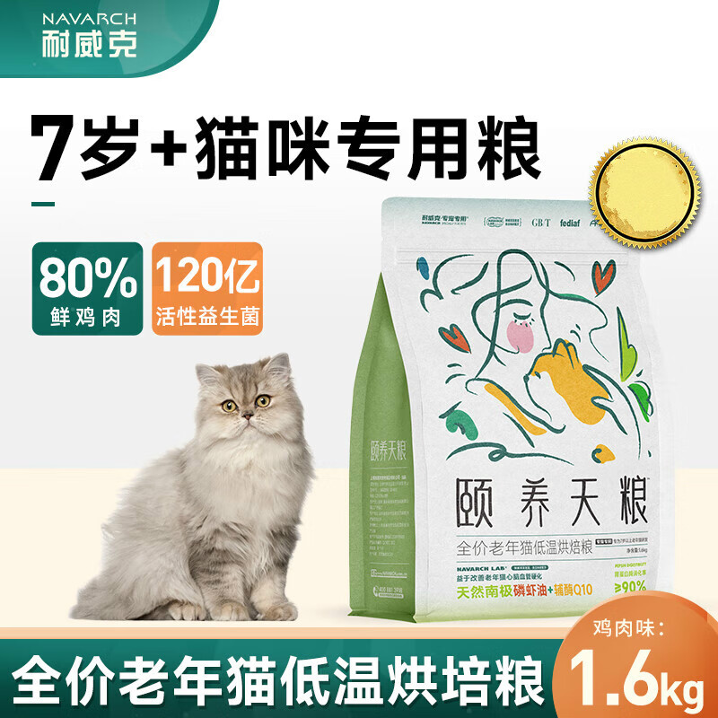 耐威克颐养天粮老年猫专用猫粮鲜肉低温烘焙粮无谷物7岁以上适用 老年猫粮 1.6kg