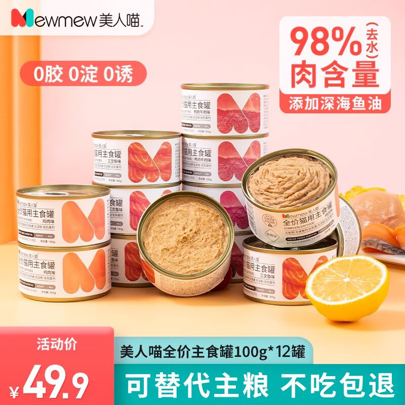 美人喵 猫罐头主食罐猫咪零食成幼猫营养增肥全价猫粮猫条24罐整箱 全价主食罐混合口味100g*12罐