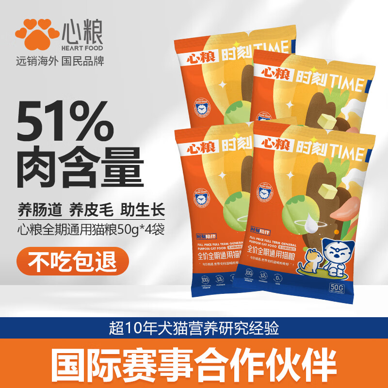 心粮 时刻猫粮无谷鲜肉全阶段成幼爱心猫粮50g*4袋