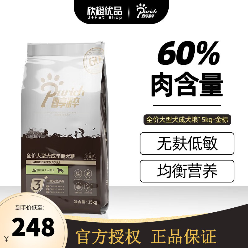 醇粹(Purich)狗粮大型犬成犬幼犬全价全期粮金标黑标纯粹主粮 大型犬成犬丨金标15kg