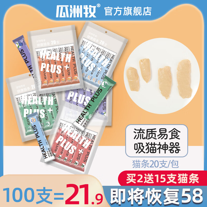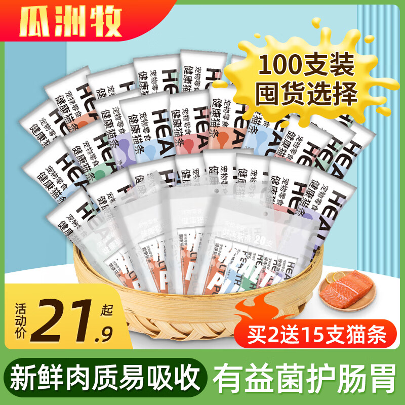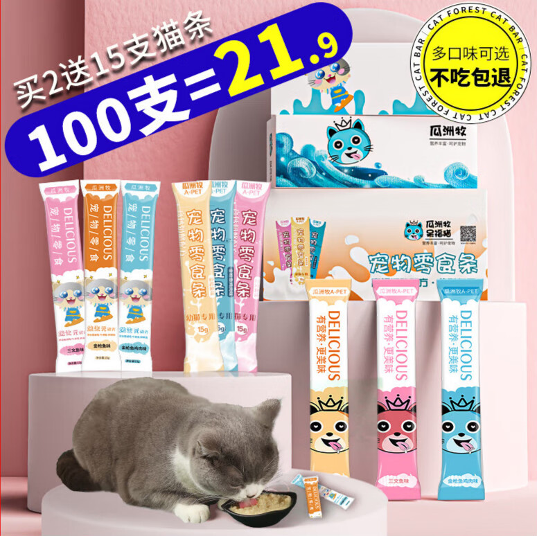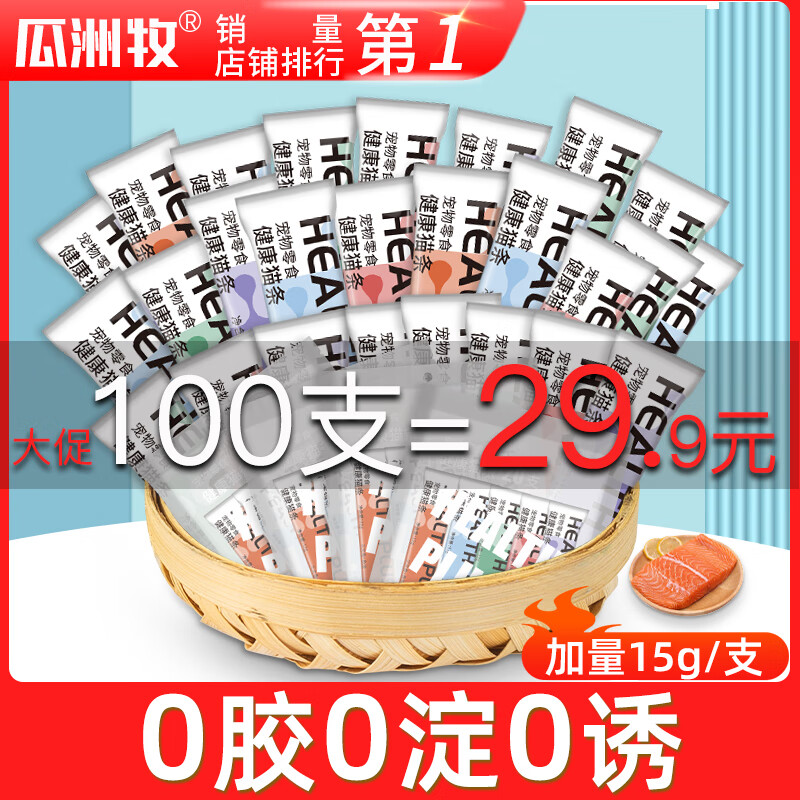 瓜洲牧猫咪零食猫条营养增肥小猫罐头幼猫小鱼干包妙鲜猫湿粮100支整箱 猫条口味随机15g*30支-促销款 支