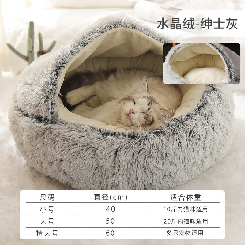 KimPets猫窝四季通用宠物小猫咪屋被子冬季保暖猫狗窝冬天用品封闭式猫床 柔制水晶绒(绅士灰) 柔软包裹 直径60cm,适合30斤内宠物