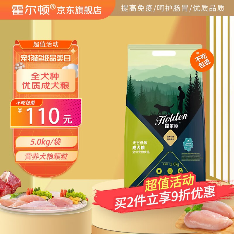霍尔顿 狗粮 无谷鲜肉狗粮 金毛泰迪拉布拉多阿拉斯加狗粮 5kg成犬
