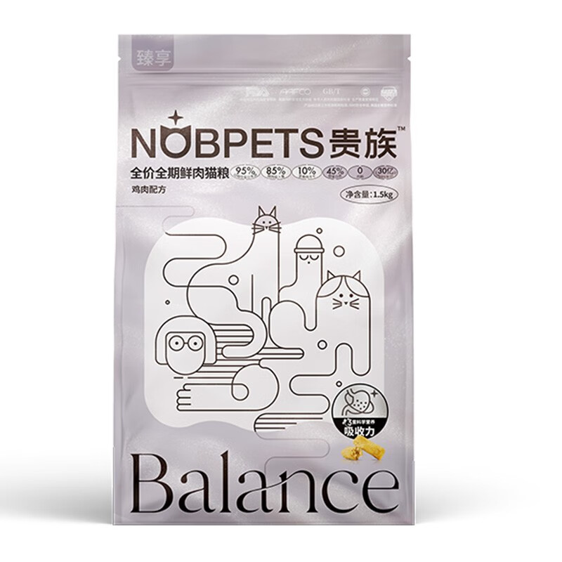 贵族猫粮 臻享系列 成幼猫全价全期鸡肉鱼肉猫干粮 添加10%冻干生骨肉 鸡肉配方1.5kg-0肉粉