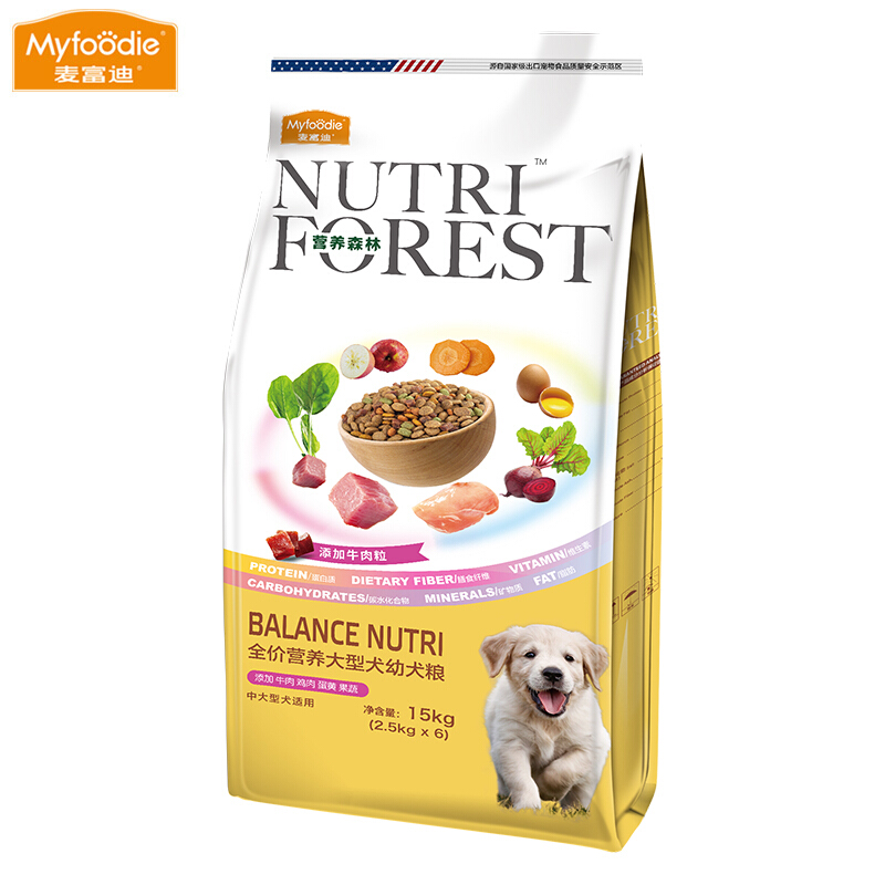 麦富迪 营养森林系列狗粮柴犬金毛泰迪全犬通用型 中大型幼犬粮15kg
