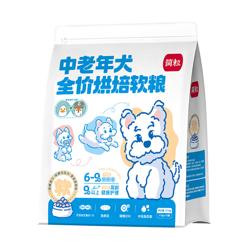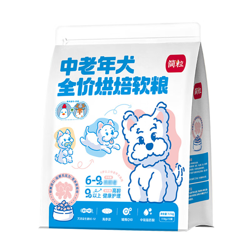 简粒三色低温全价烘焙狗粮小型犬中型犬老年犬通用鲜肉软狗粮 中老年犬(鸡肉鹿肉)1.1kg