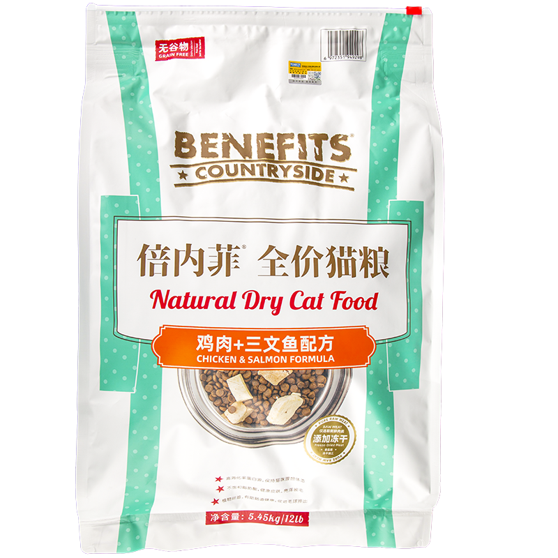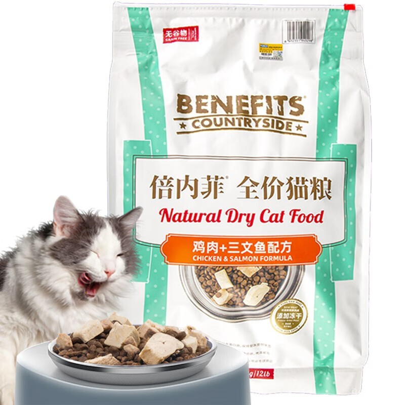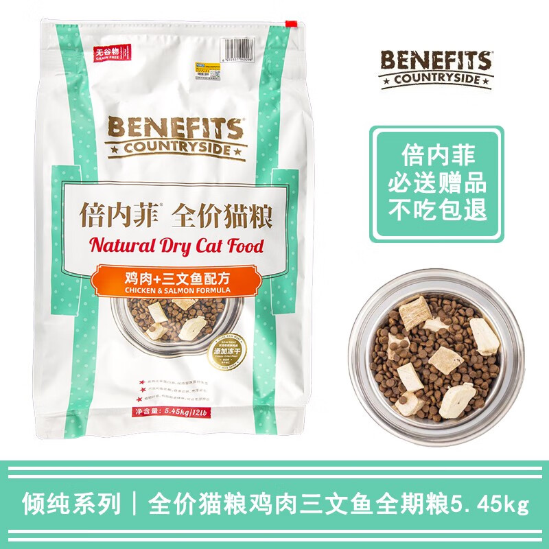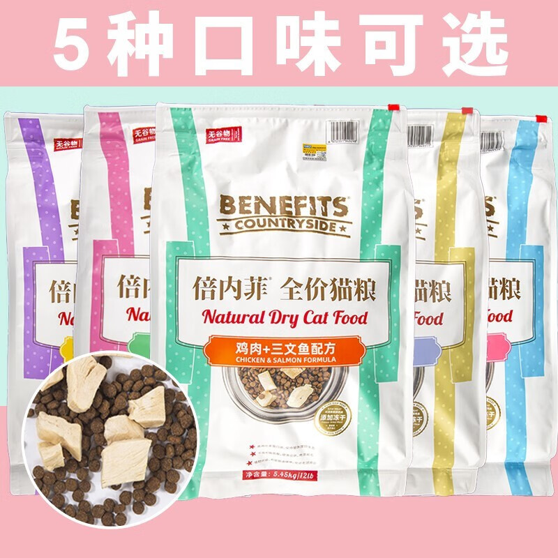 倍内菲猫粮 无谷天然猫粮大块冻干肉全价猫粮鸡肉鸭肉鱼肉增肥发腮美毛 鸡肉三文鱼5.45kg