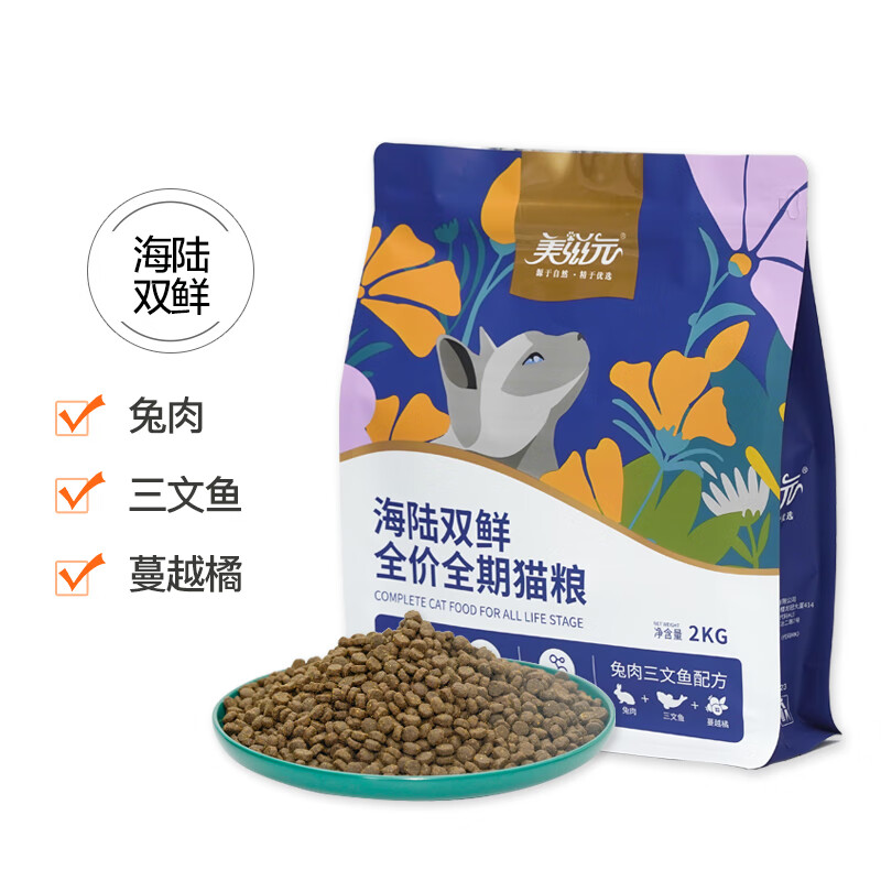 美滋元海陆双鲜全价全期猫粮2kg 兔肉三文鱼配方 兔肉 三文鱼 蔓越橘 2kg
